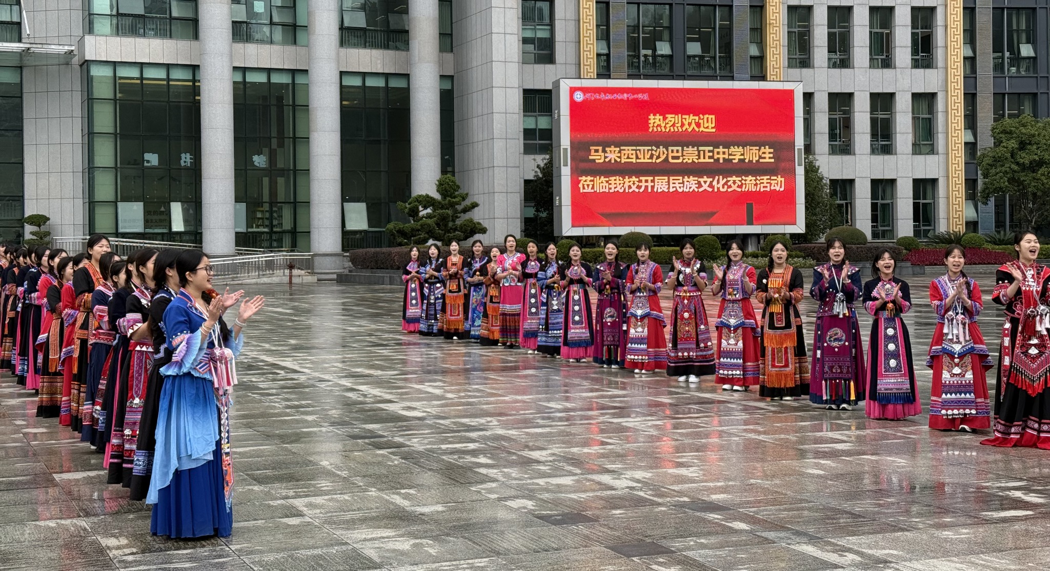 除了艺术交流,崇正学生还参观了被誉为“广西中职教育典范”的河池职教中心,其宏大的规模与完善的体系让学生们大开眼界。这不仅拓宽了学生的视野,也引发了他们对个人未来发展的多元思考。整个旅程中,从抵达时身着民族服饰的歌舞迎宾、校领导的亲切接待,到离别时深情的送行,沙巴师生无不被中方伙伴的热情与真诚所感动,真挚情谊贯穿始终。