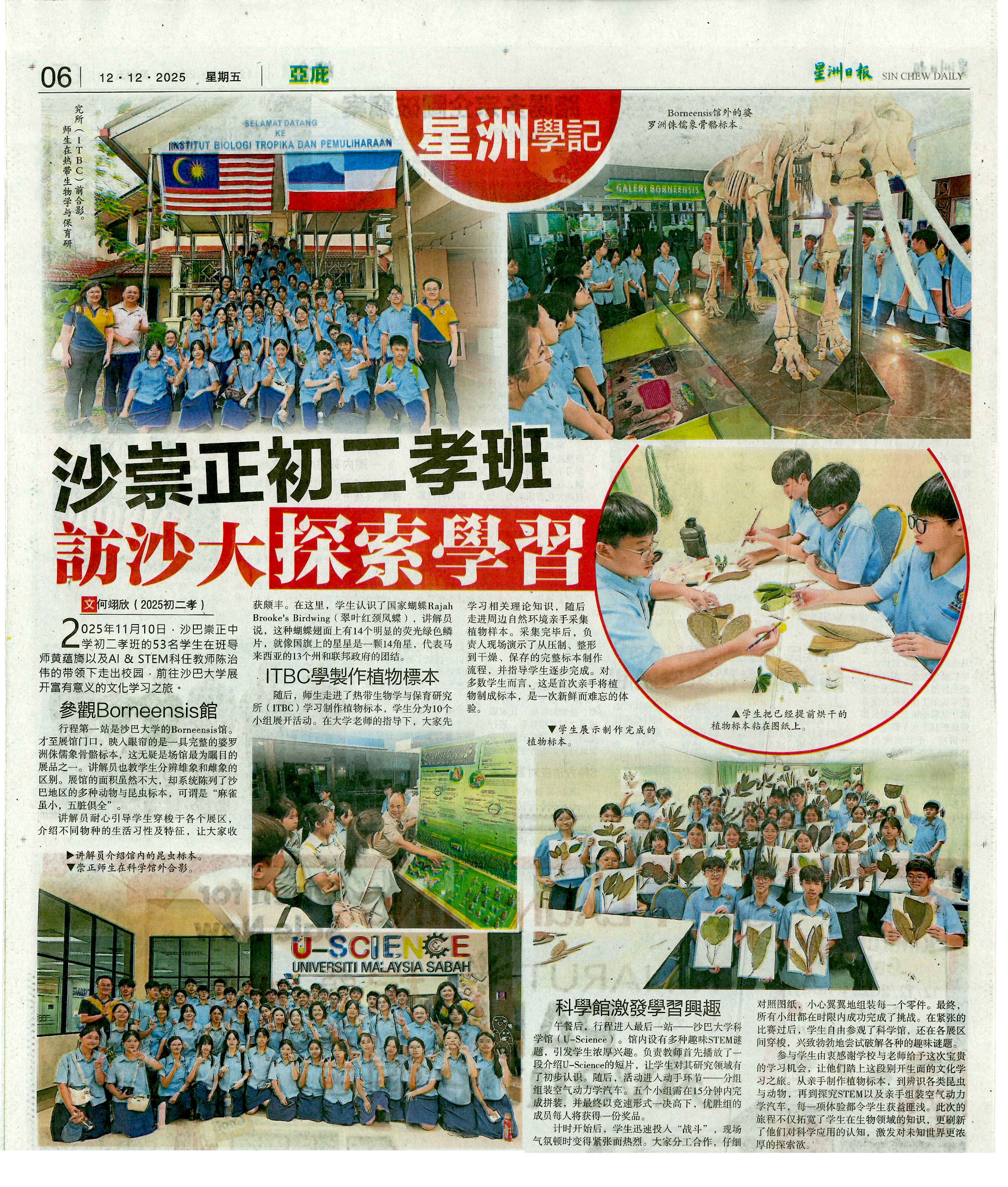 知道国家蝴蝶 Rajah Brooke’s Birdwing吗?今年初二孝班的同学在沙巴大学Borneesis馆专业讲解员的说明下,认识了象征马来西亚13州和联邦政府的团结的珍贵热带雨林物种。