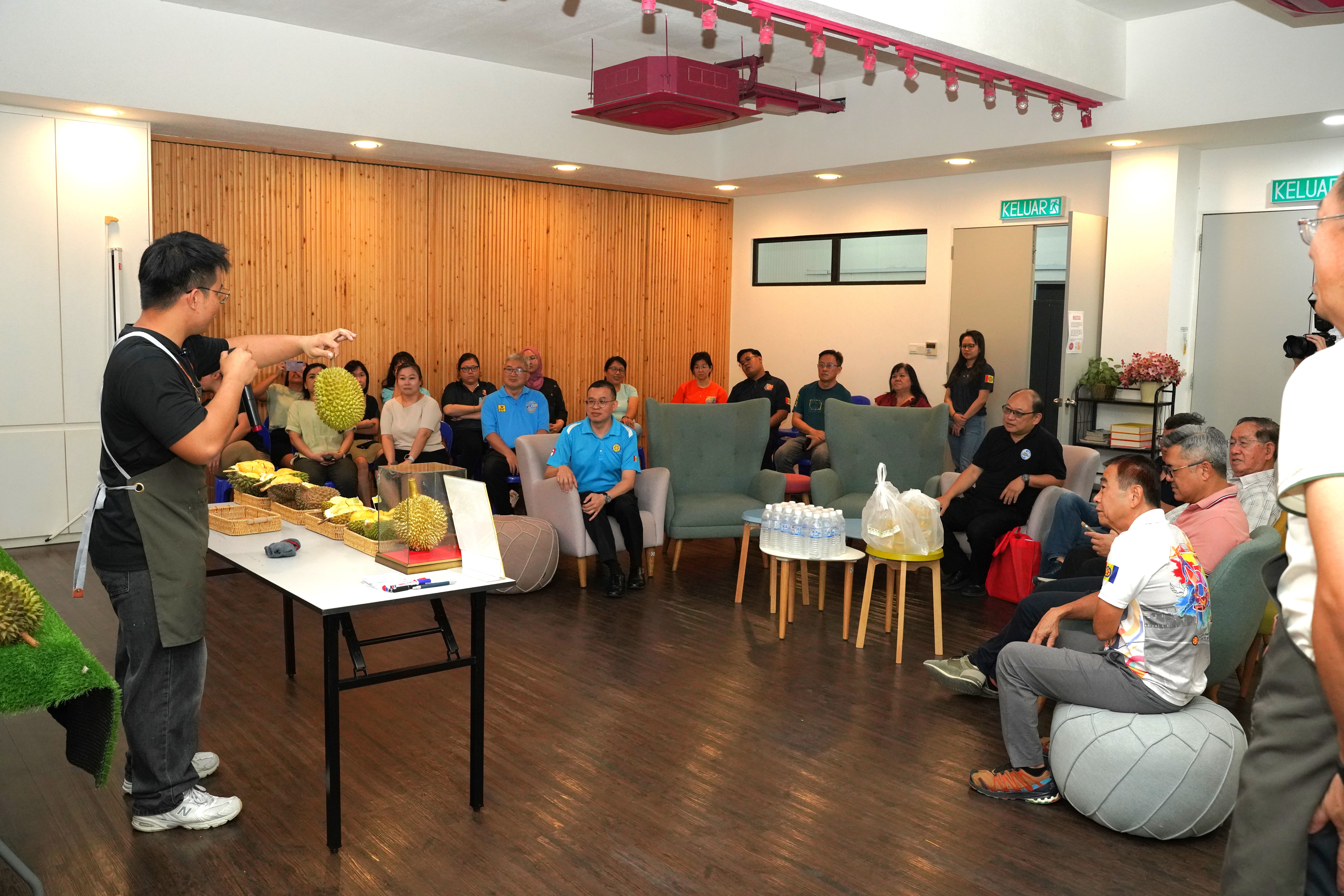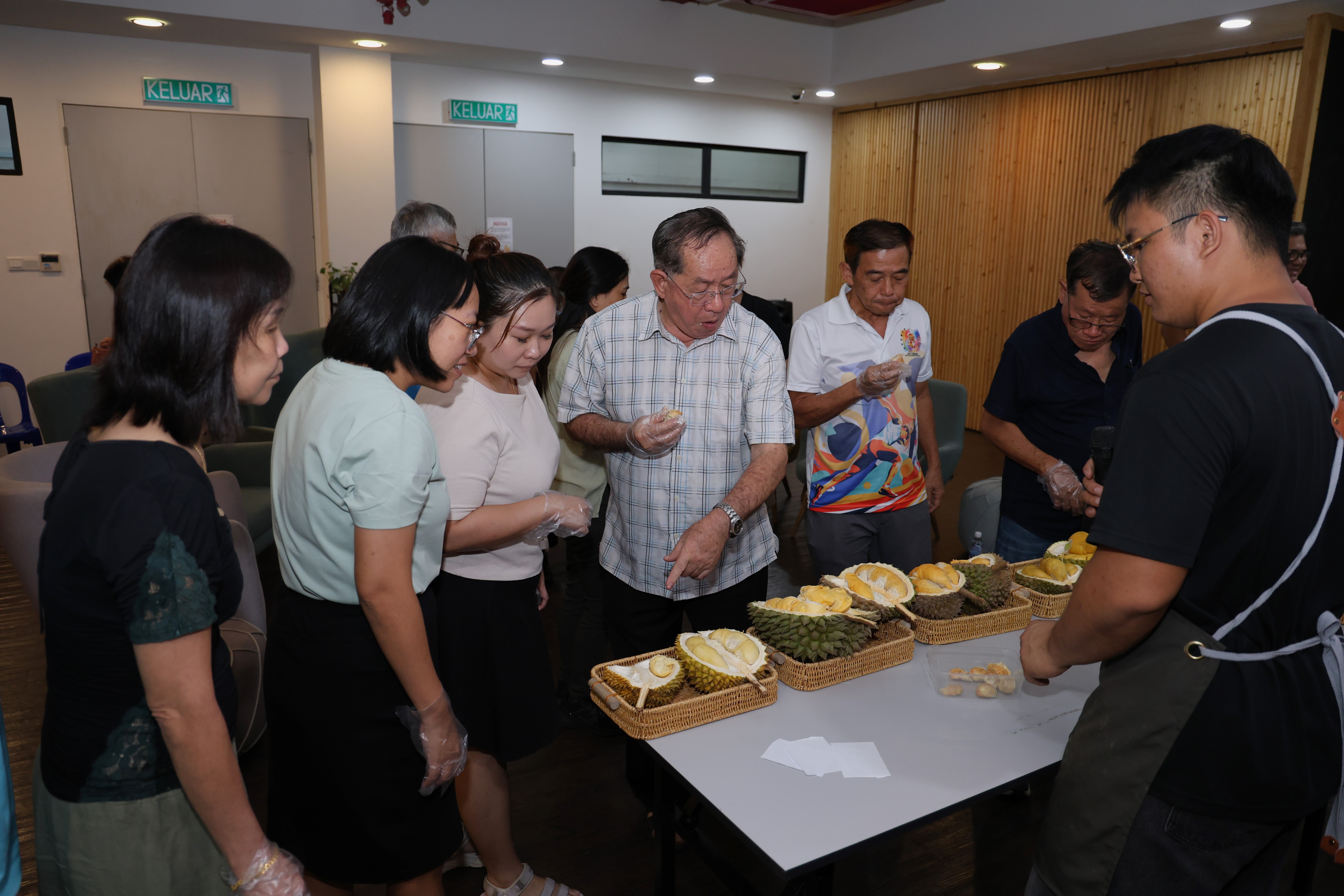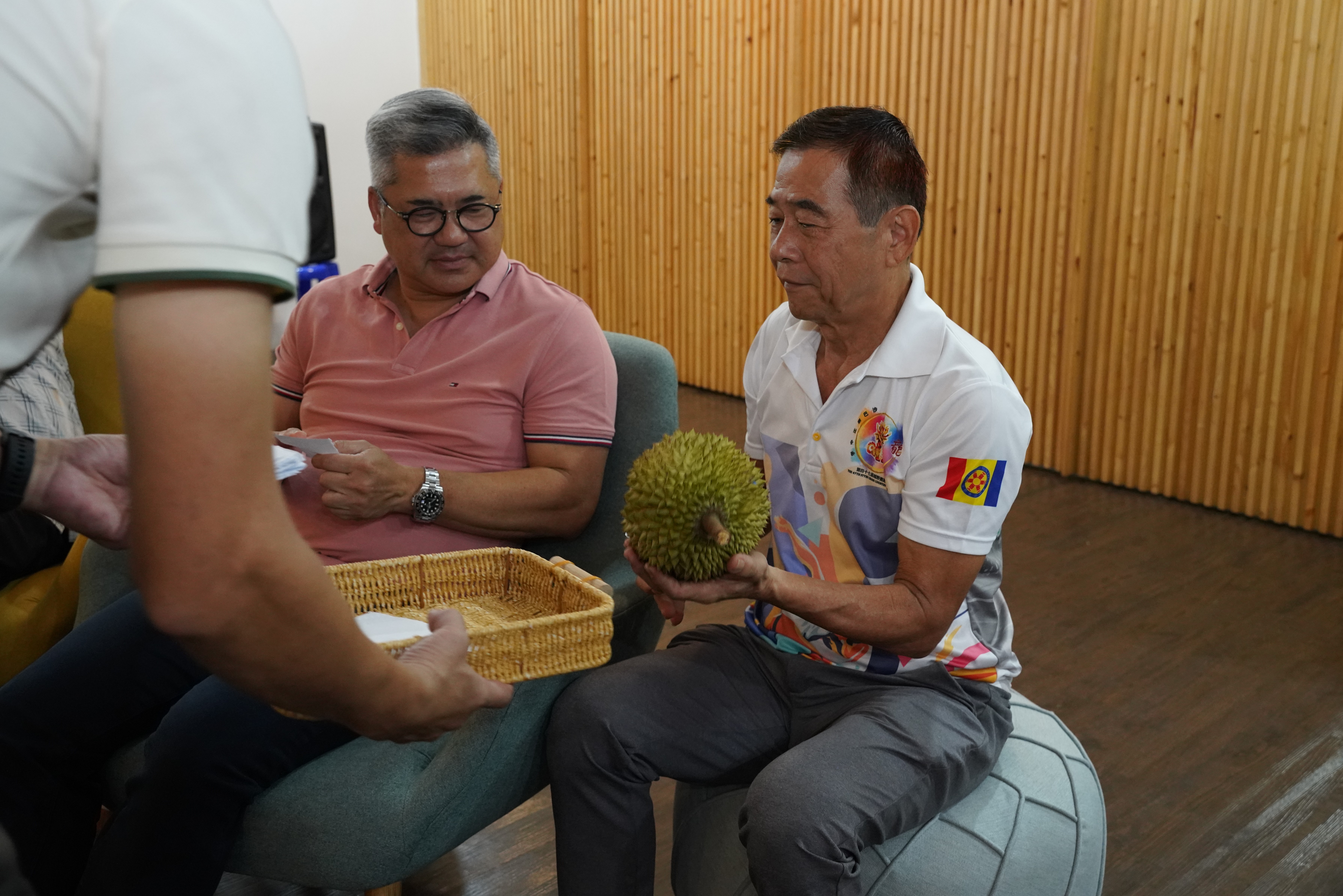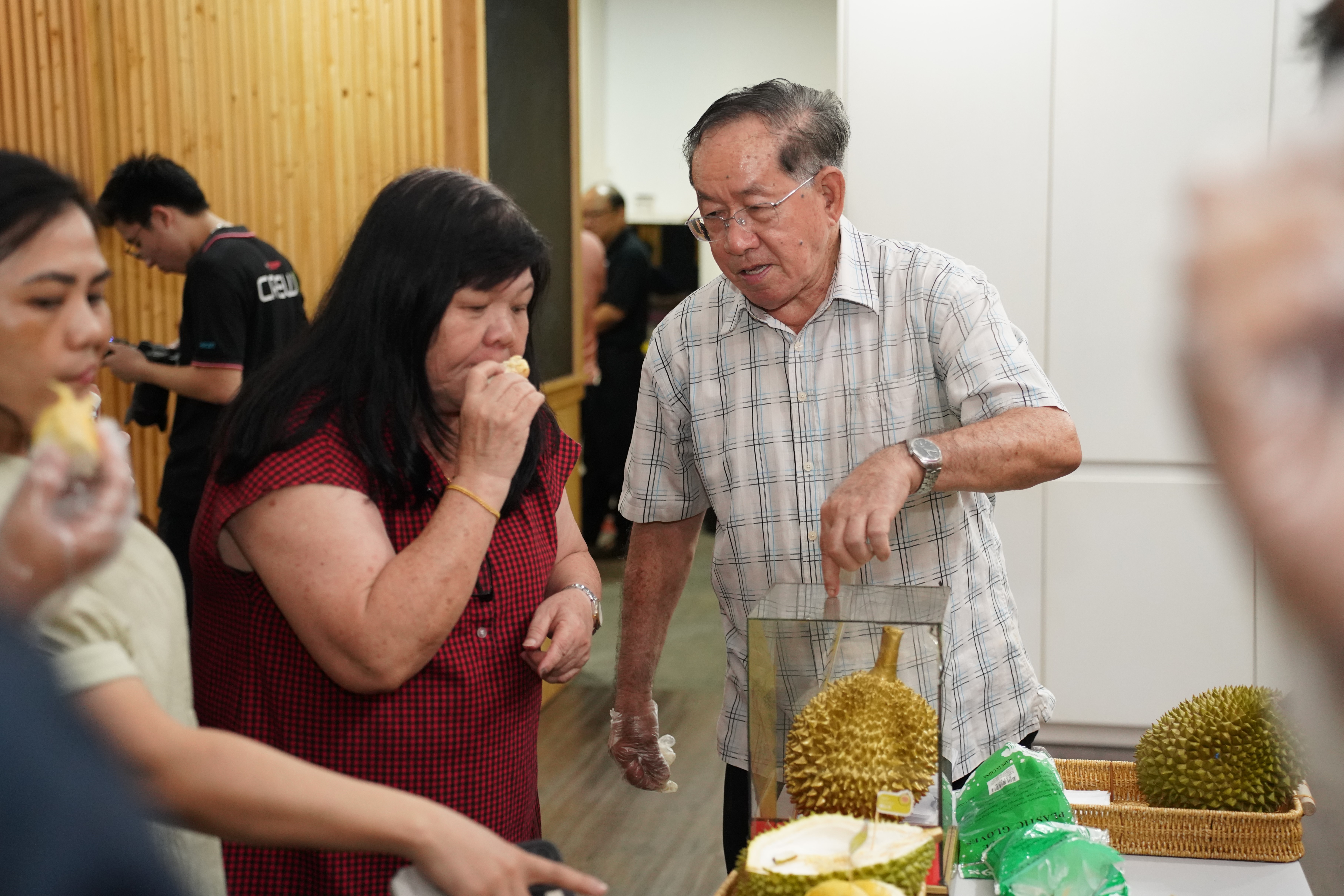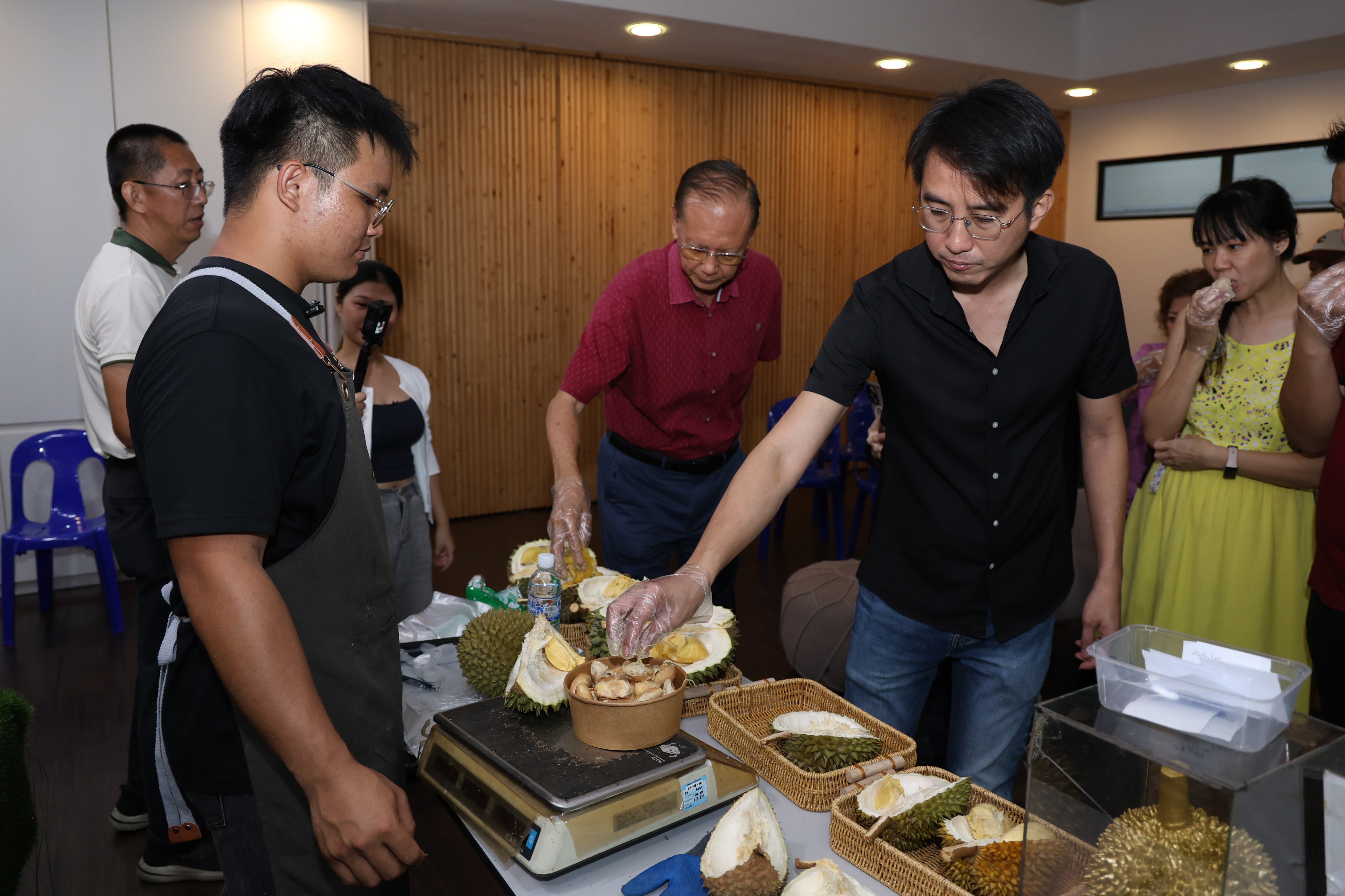 在雷校友以及团队的细心解说和介绍下,大家趁此机会认识不同品种榴莲的口感质地、色泽、香味等特性。这场榴莲工作坊,安排了现学、现看、现吃环节,成为“水果之王”——榴莲的理论与实践机会💪