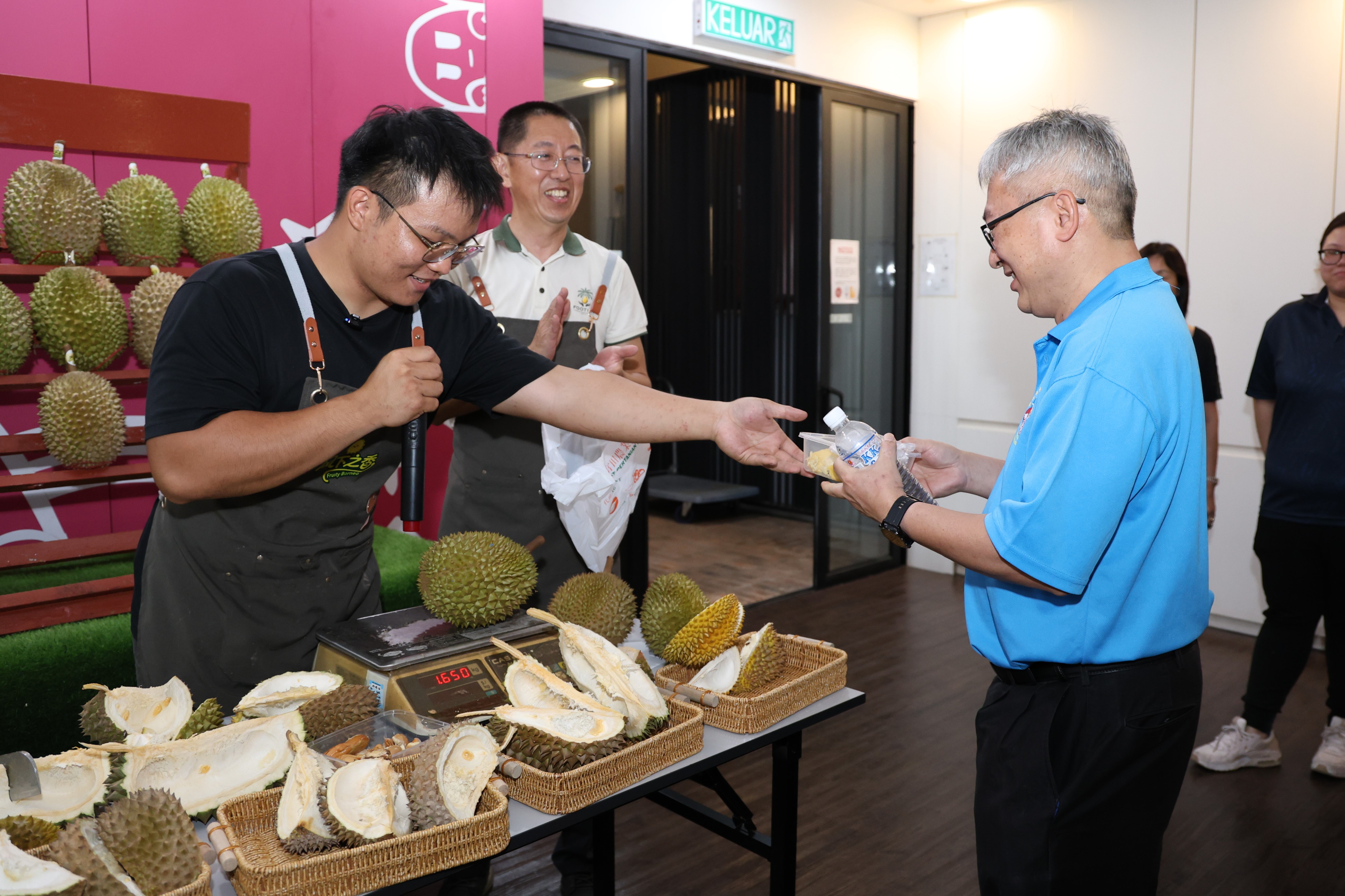 值得一提的是,雷校友已连续四年无偿赞助榴莲筹募助学金。本次活动中,董事长率先响应认购、董事、理事、校友及教职员随后踊跃支持,最终筹得款项共 RM4700🎉 雷光平校友以其父亲雷德修先生之名,全数捐献予学校助学金。