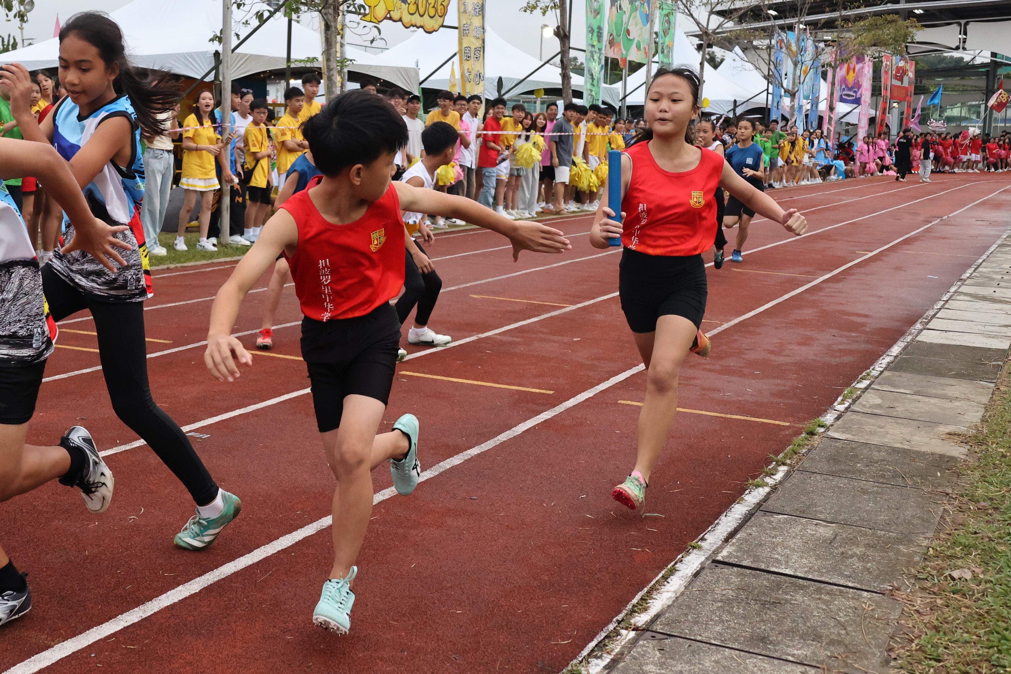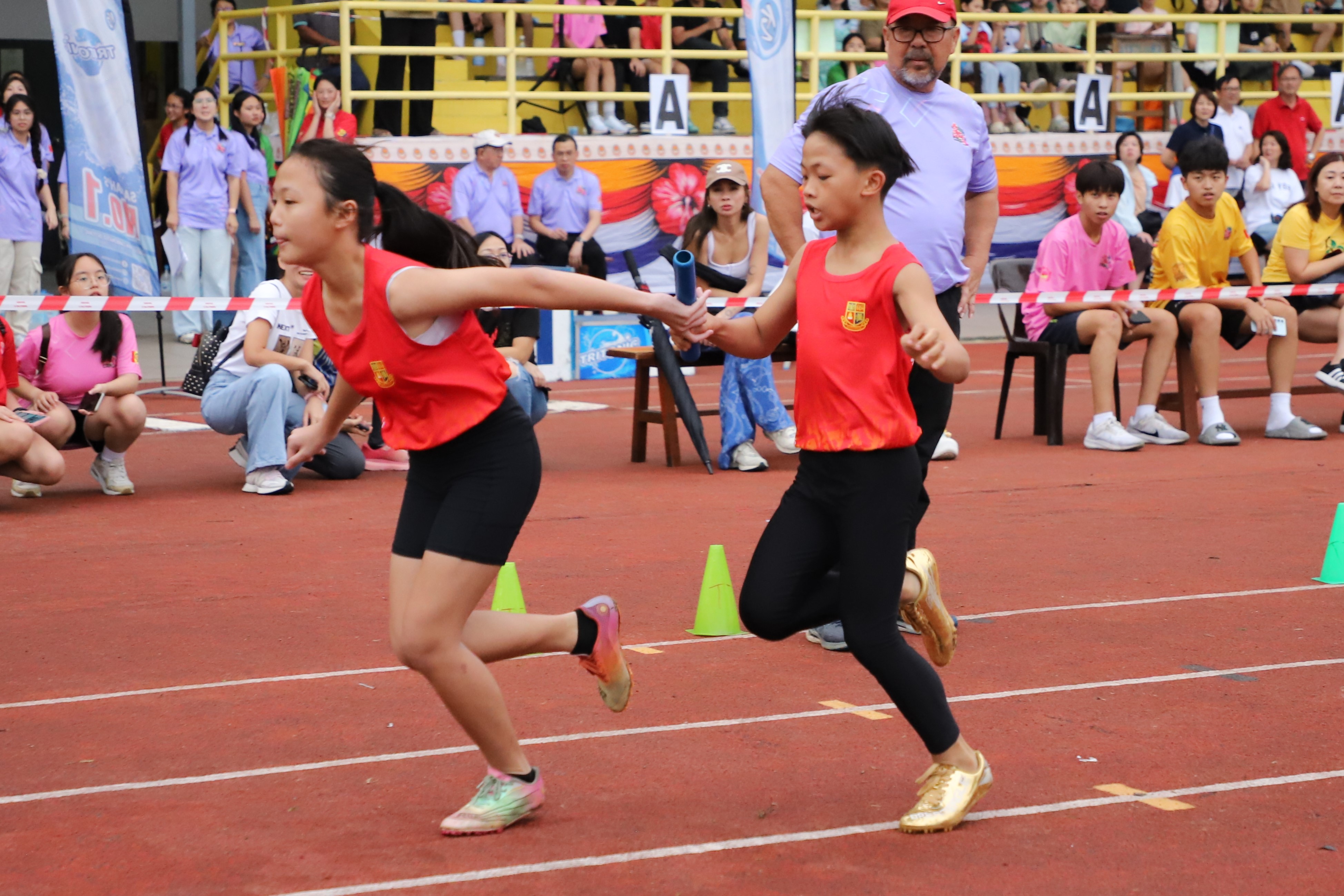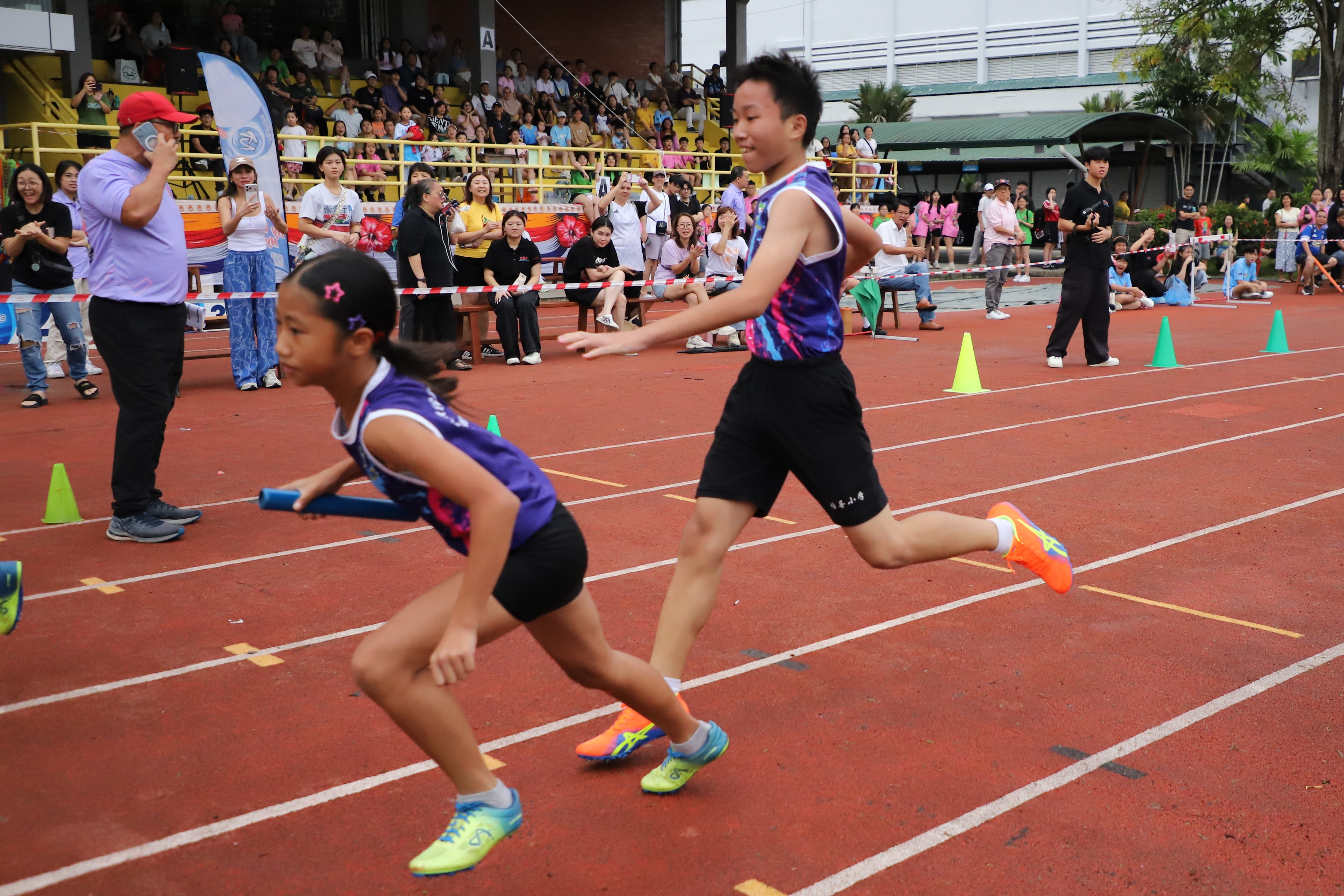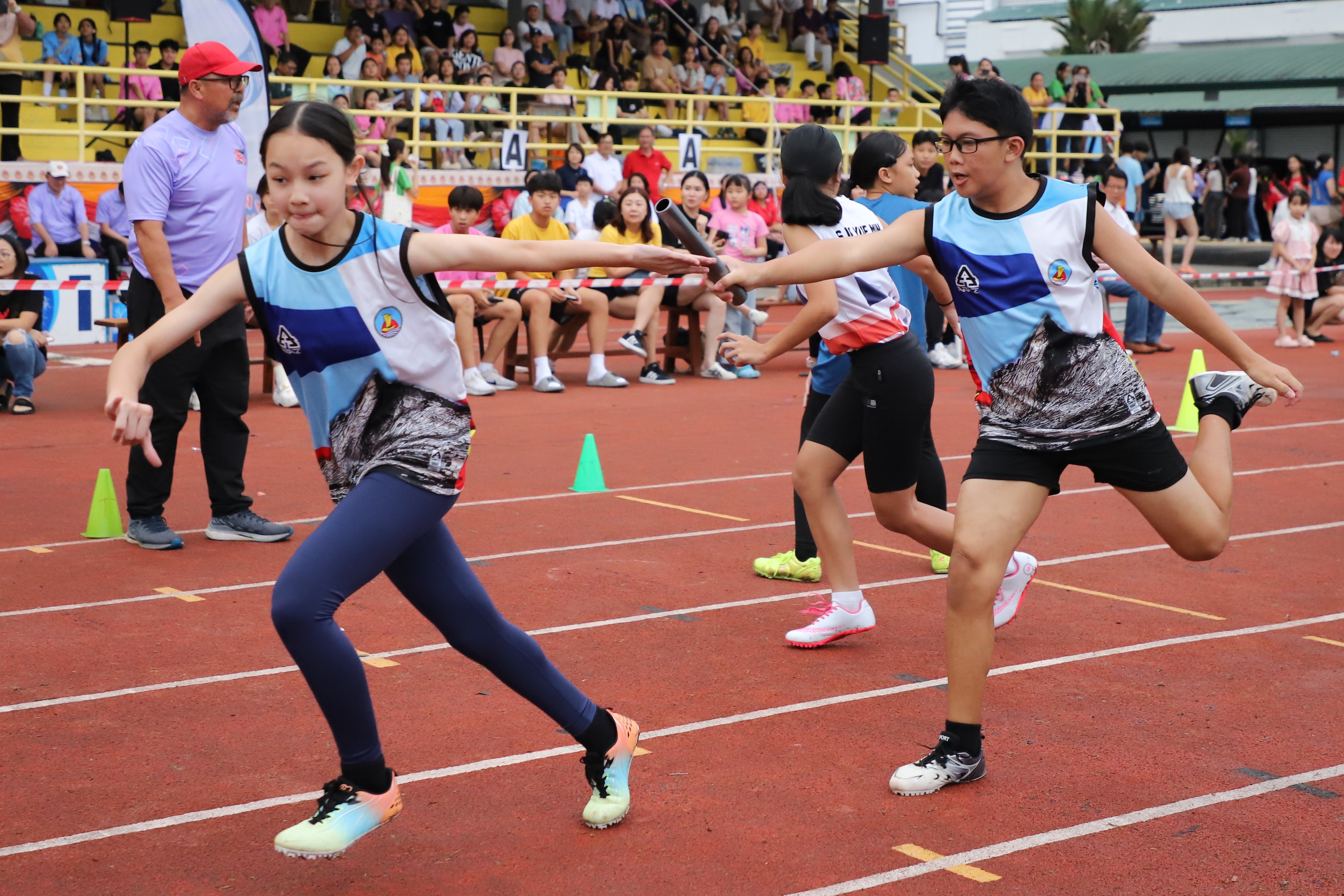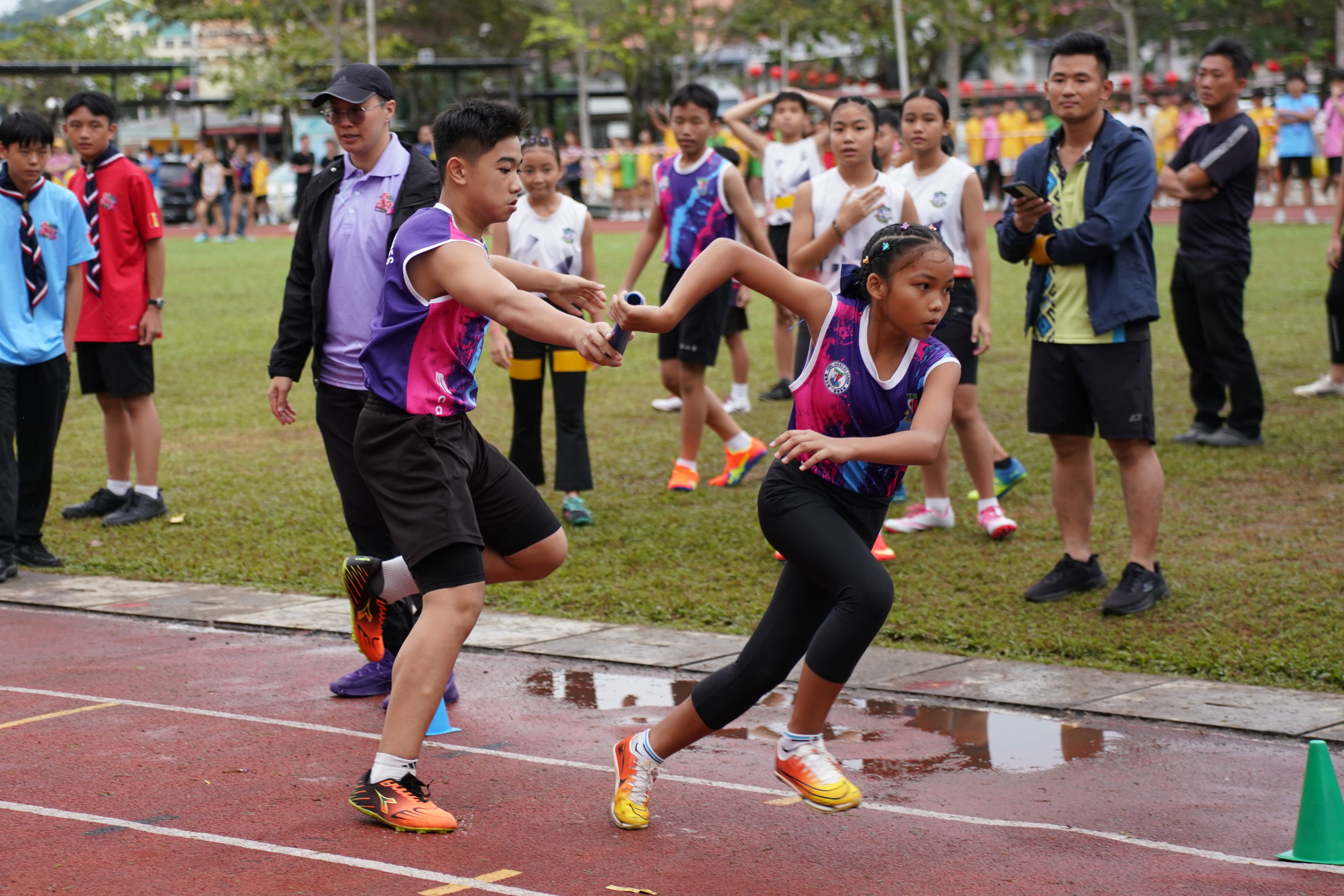 本校第53届运动会华小 6 × 100 米男女混合接力赛在欢呼与热烈掌声中,于昨日圆满举行。 尽管当天一度细雨纷飞,但在雨势渐缓后,小选手们依然精神抖擞、斗志昂扬, 在赛道上全力冲刺、默契配合,以坚定的步伐与灿烂的笑容, 为赛场注入蓬勃朝气与动人的团队力量。