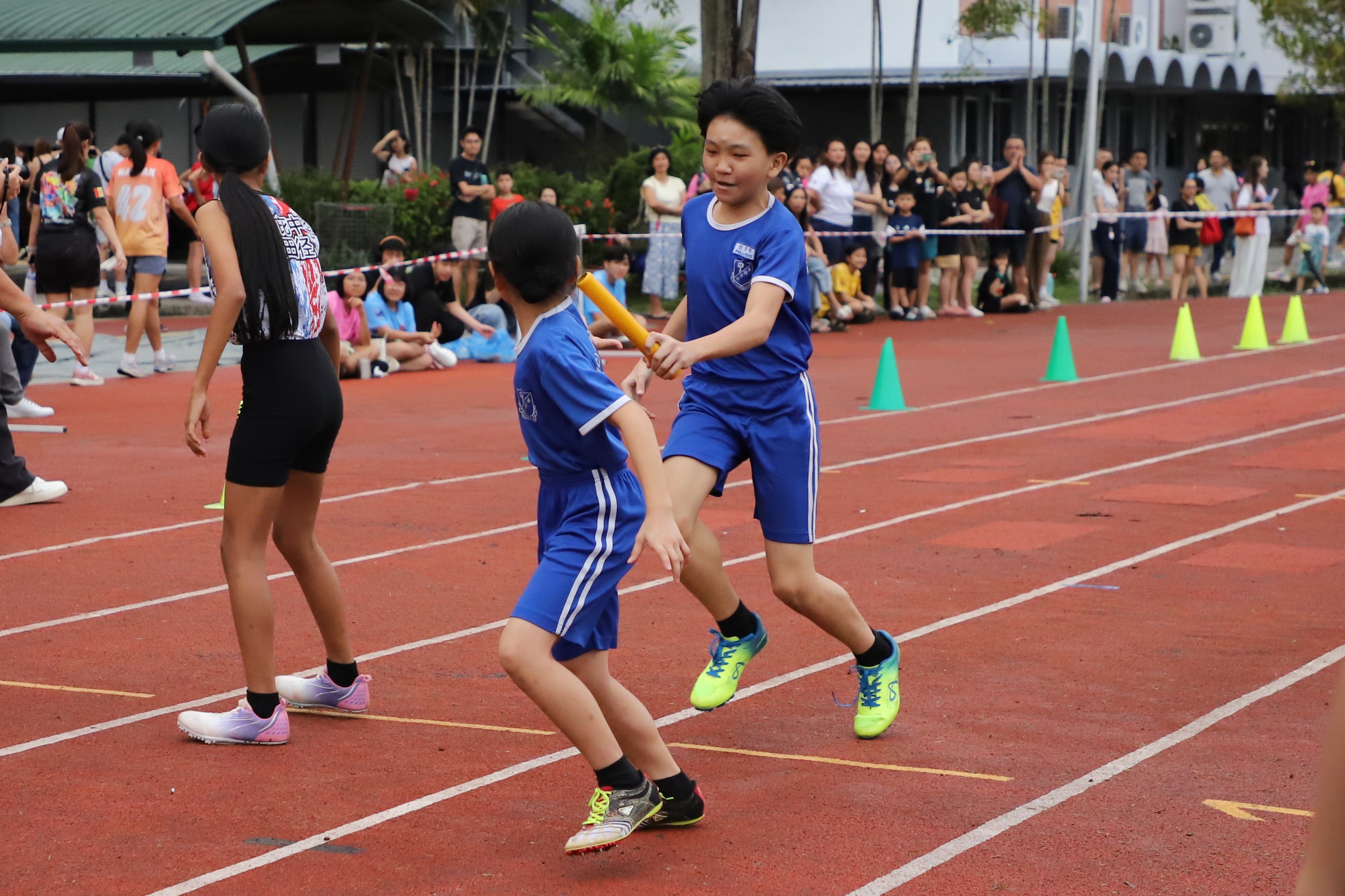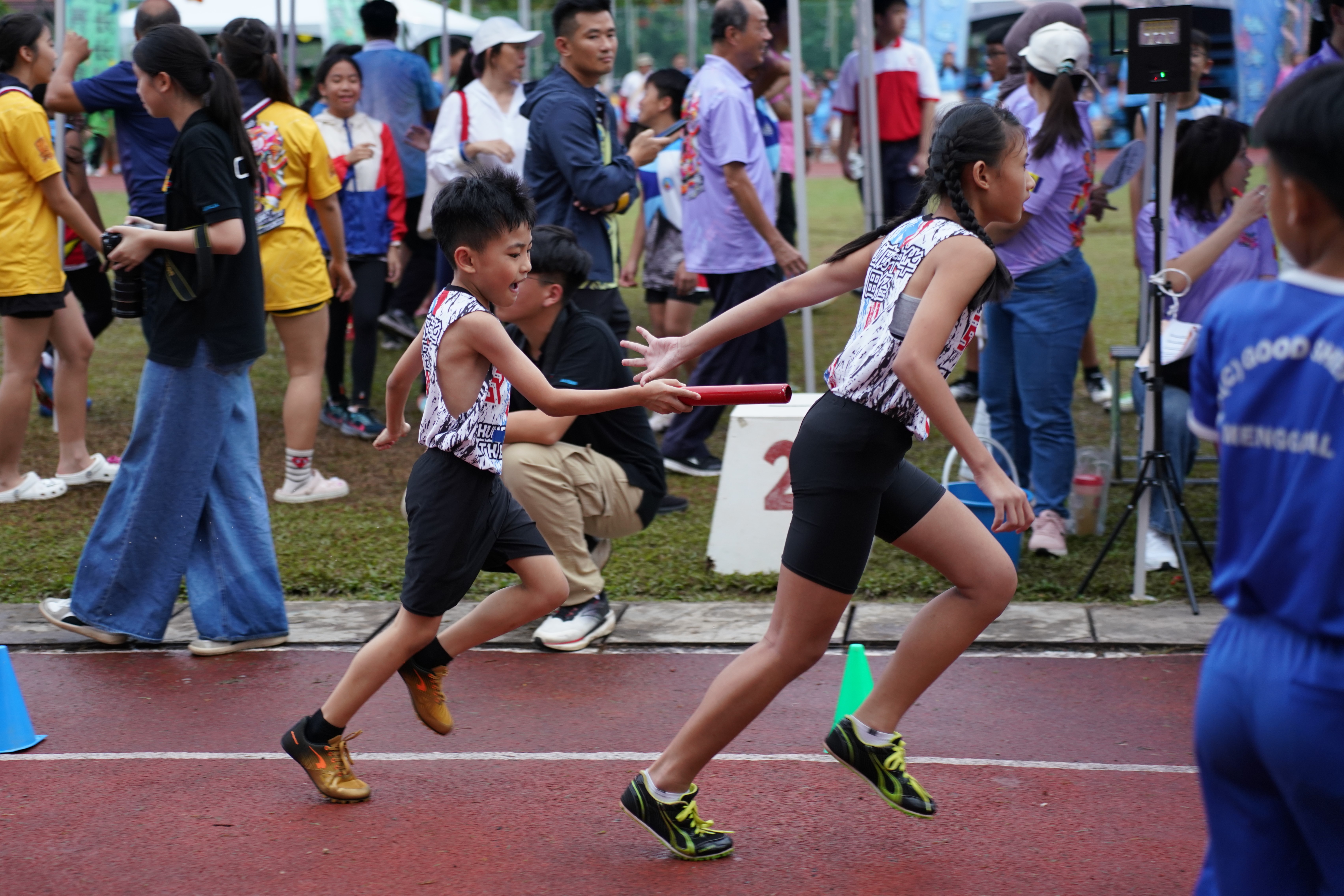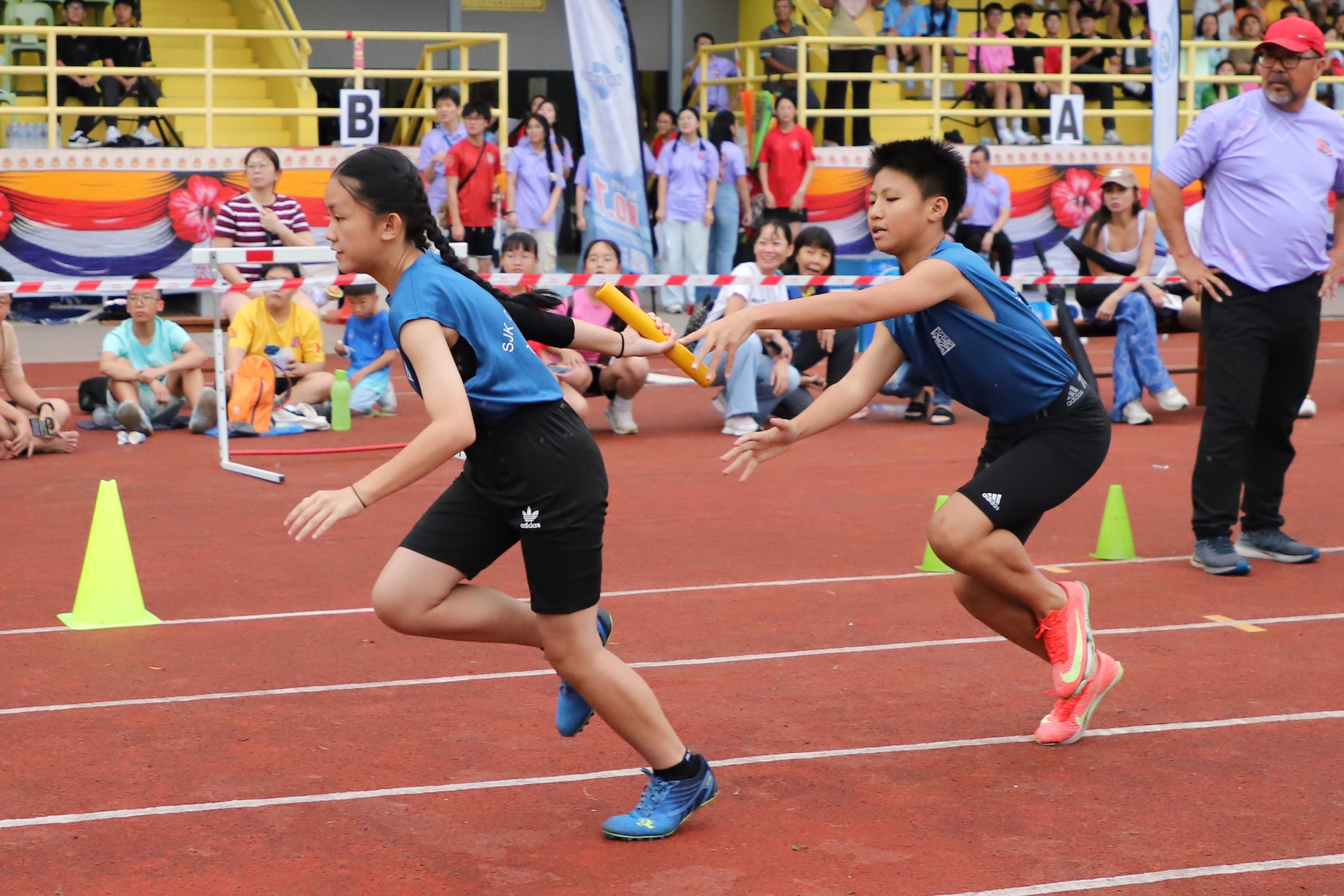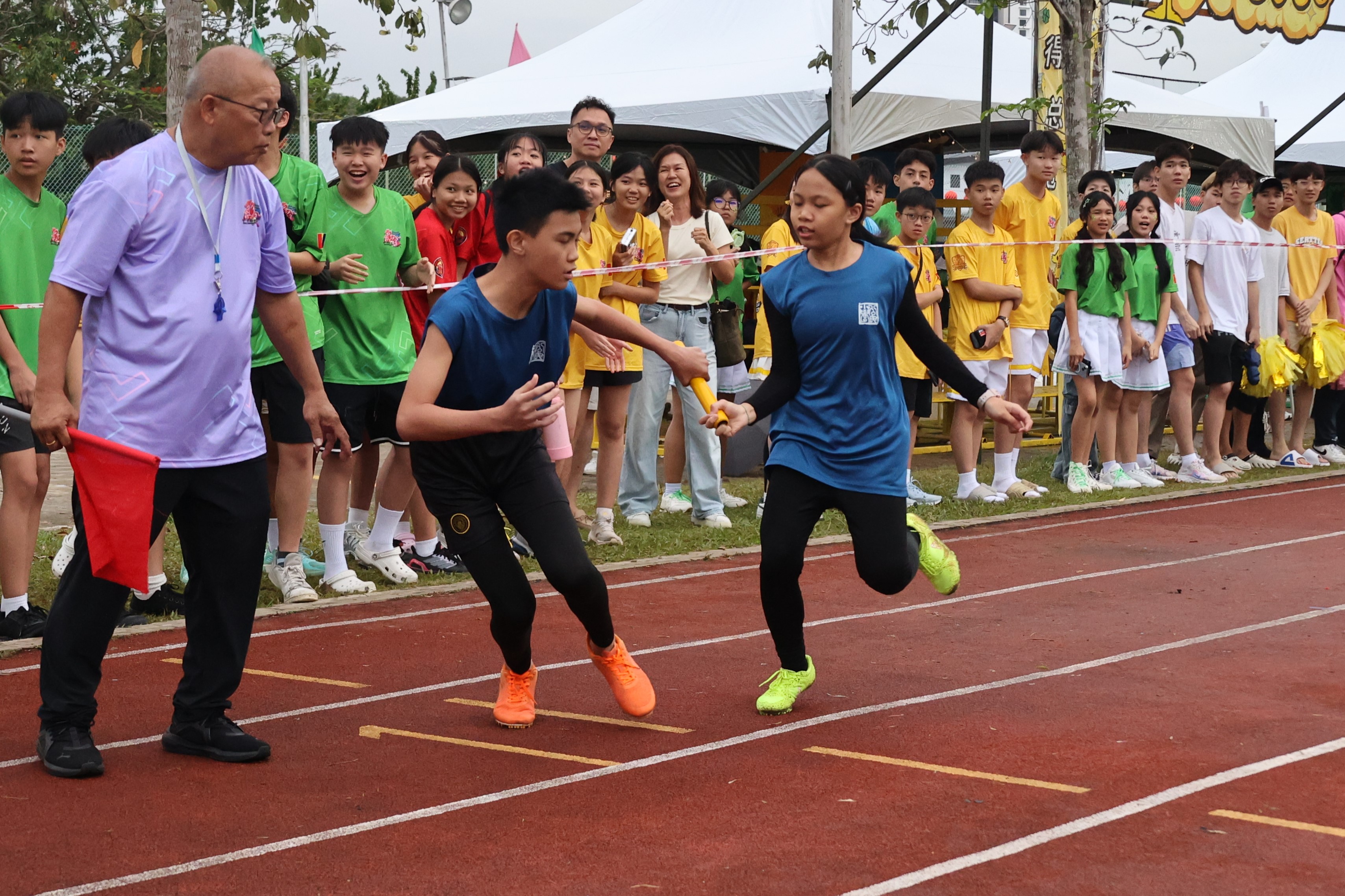 本校第53届运动会华小 6 × 100 米男女混合接力赛在欢呼与热烈掌声中,于昨日圆满举行。 尽管当天一度细雨纷飞,但在雨势渐缓后,小选手们依然精神抖擞、斗志昂扬, 在赛道上全力冲刺、默契配合,以坚定的步伐与灿烂的笑容, 为赛场注入蓬勃朝气与动人的团队力量。