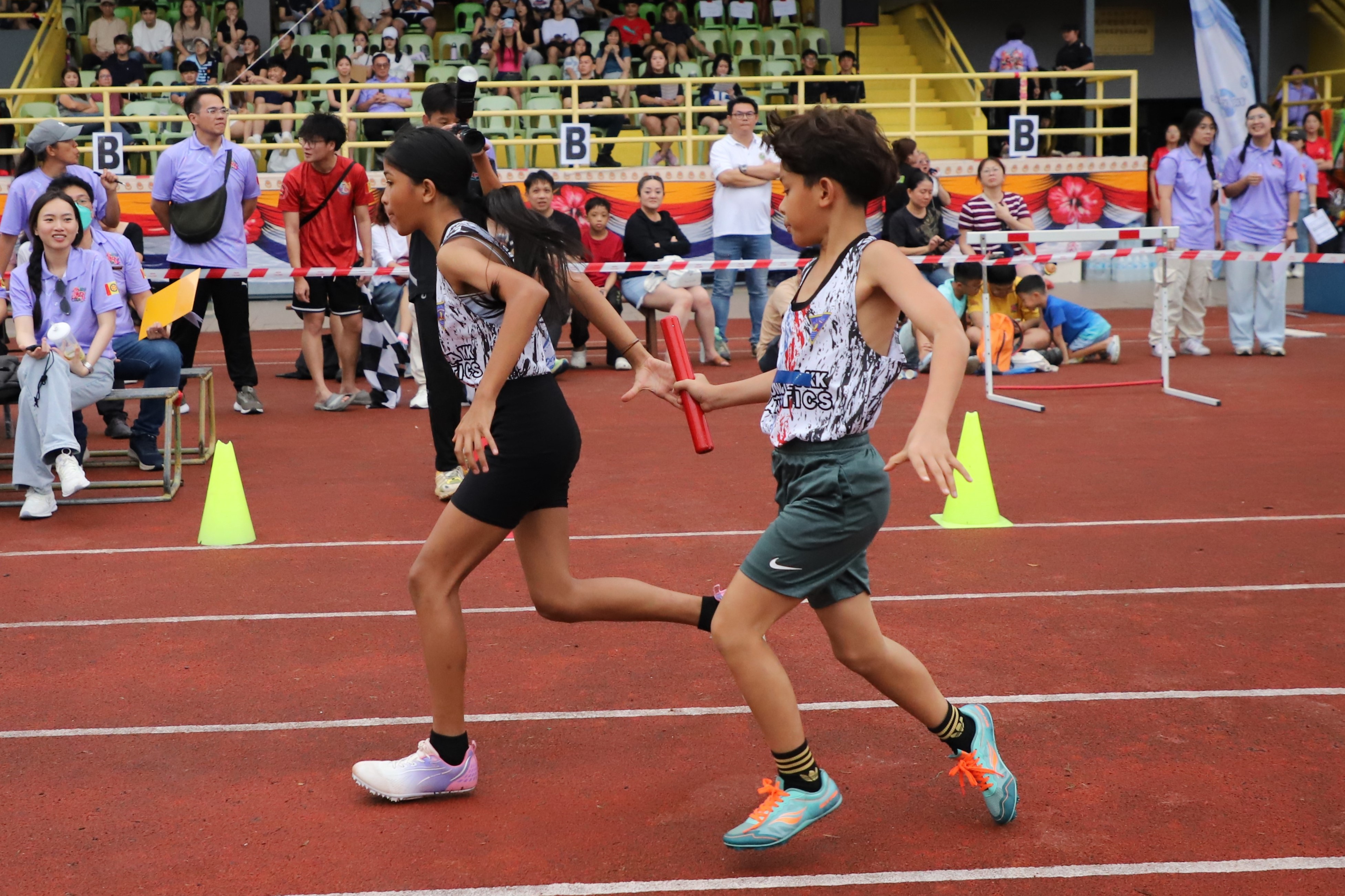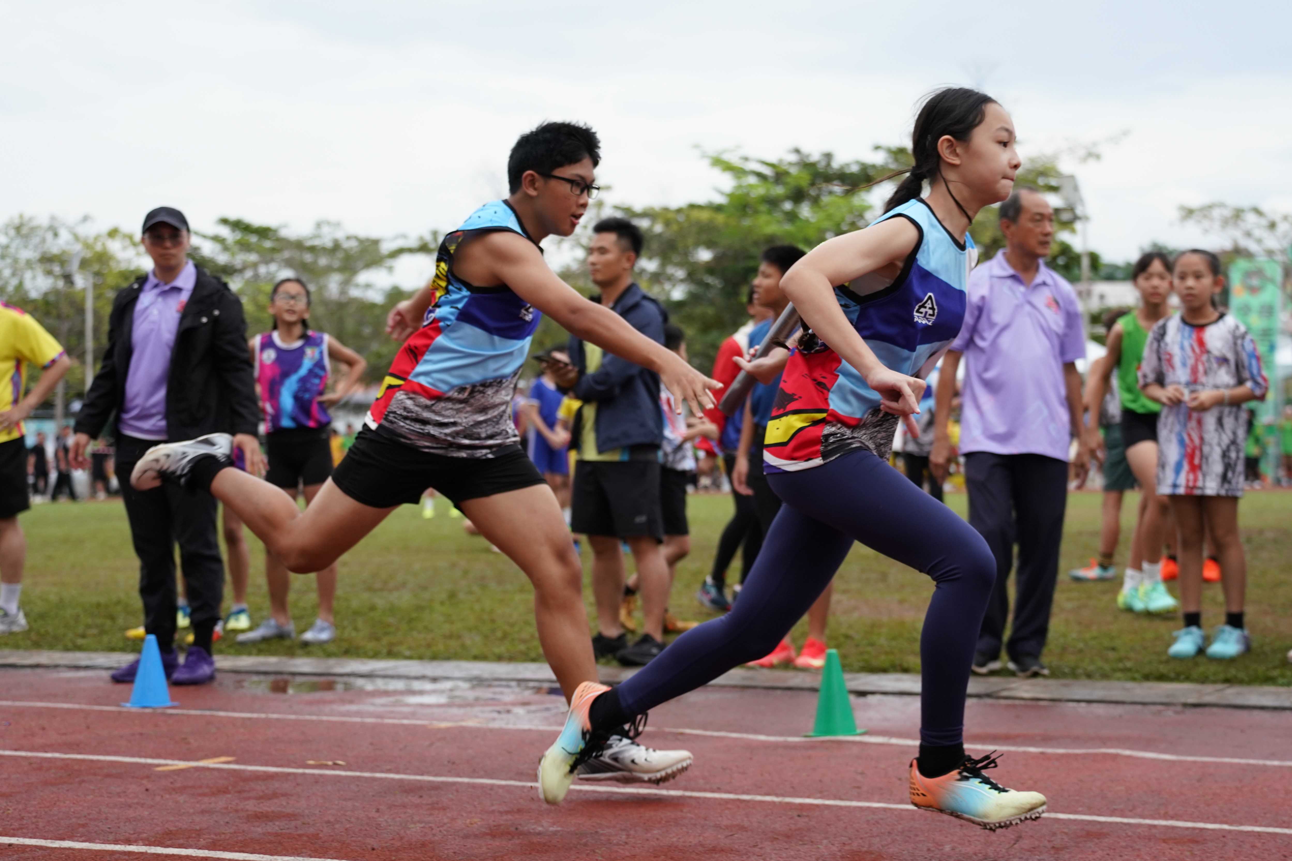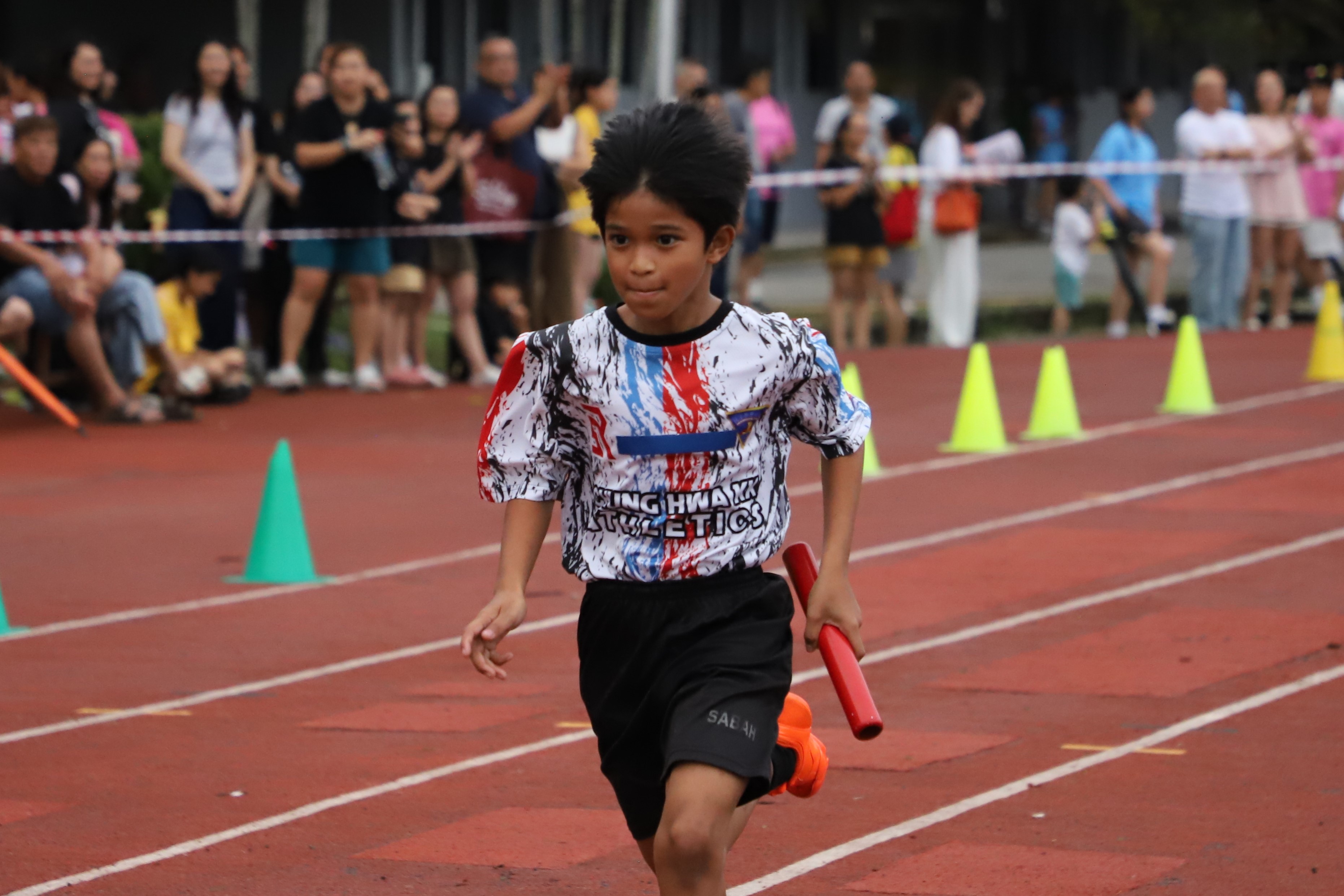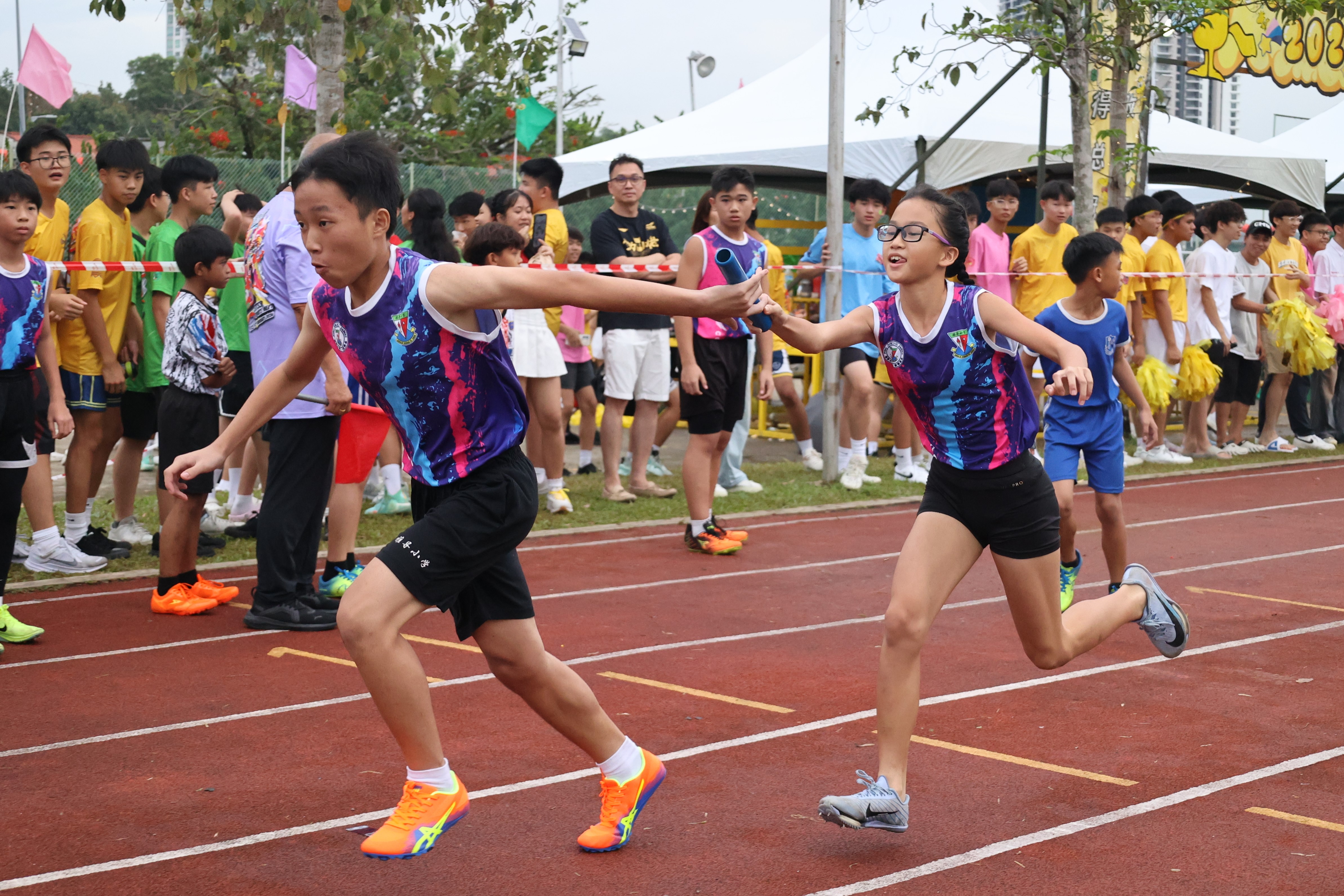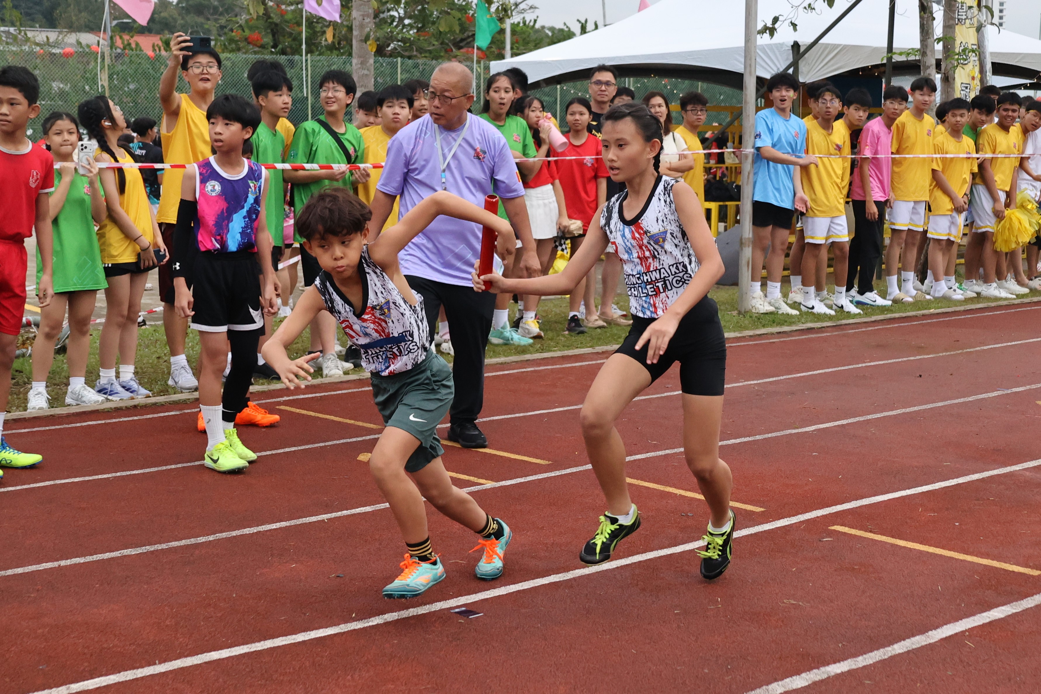 本校第53届运动会华小 6 × 100 米男女混合接力赛在欢呼与热烈掌声中,于昨日圆满举行。 尽管当天一度细雨纷飞,但在雨势渐缓后,小选手们依然精神抖擞、斗志昂扬, 在赛道上全力冲刺、默契配合,以坚定的步伐与灿烂的笑容, 为赛场注入蓬勃朝气与动人的团队力量。