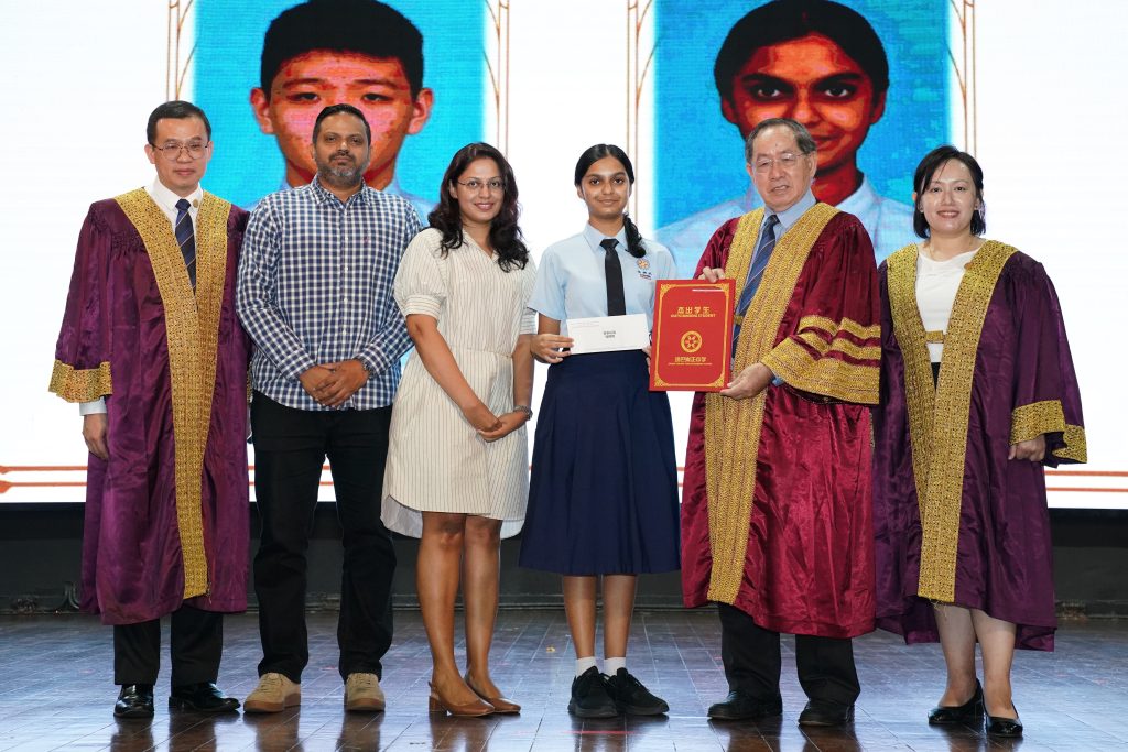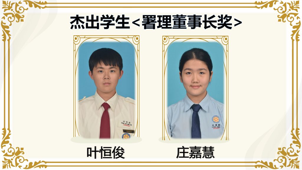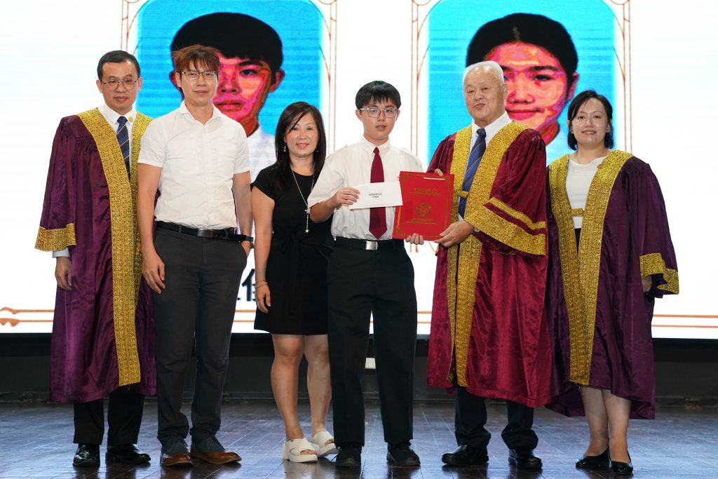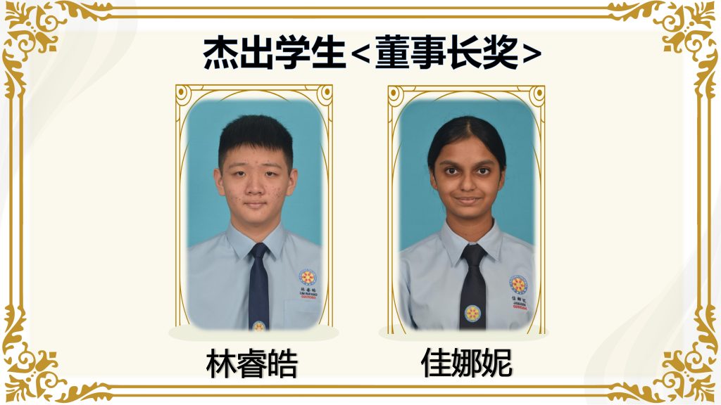 林睿皓同时荣获会考成绩、服务表现及学艺活动三项杰出学生奖。他不仅在2024年SPM考获10A佳绩,更展现卓越的领导与辩论才华,身兼毕业班联谊会主席与辩论组主席,曾担任台湾游学团学生团长,并多次主导校内华语辩论营及比赛。其辩论实力亦广受肯定,于2025年马来西亚高学杯辩论赛荣获中学组亚军及最佳辩手,更带领队伍在第十三届全州华语辩论比赛中夺得中学组冠军并个人三度获评最佳辩手,学术与课外表现均十分出色。
