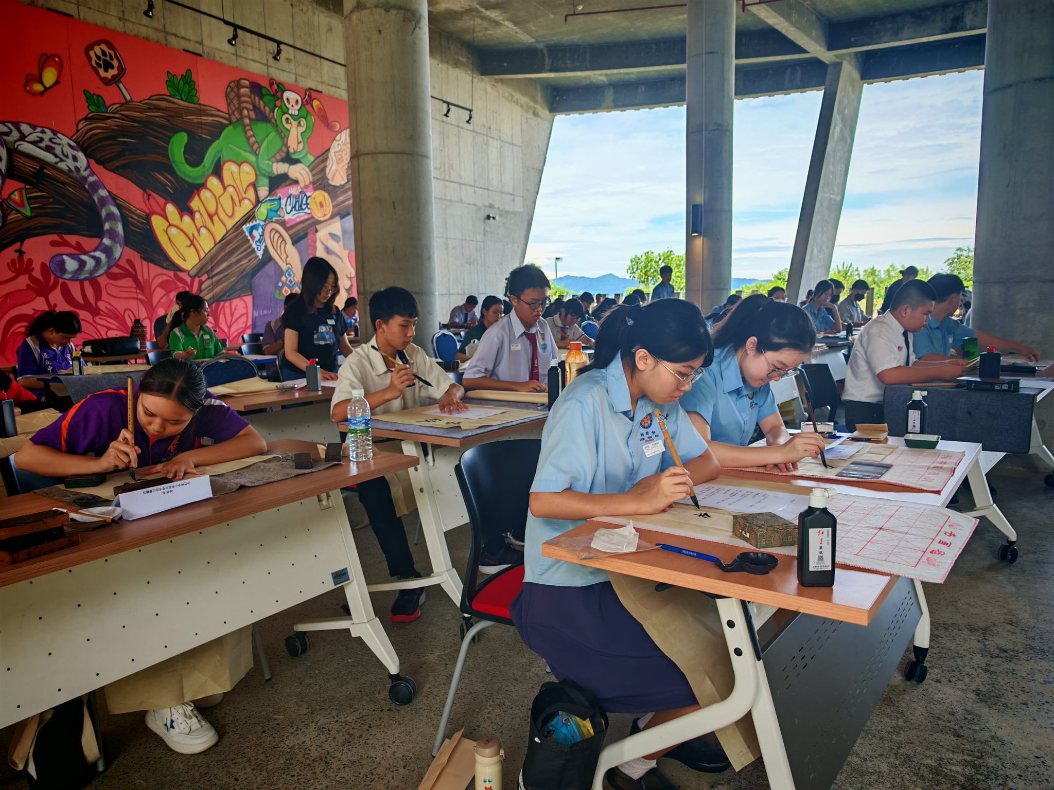 本次比赛汇聚全州各校书法好手,沙巴崇正中学共派出12位学生代表参赛。现场墨香四溢,崇正学子凝神运笔,于一横一竖间展现扎实功底,更传递出中华书法艺术的深厚韵味。