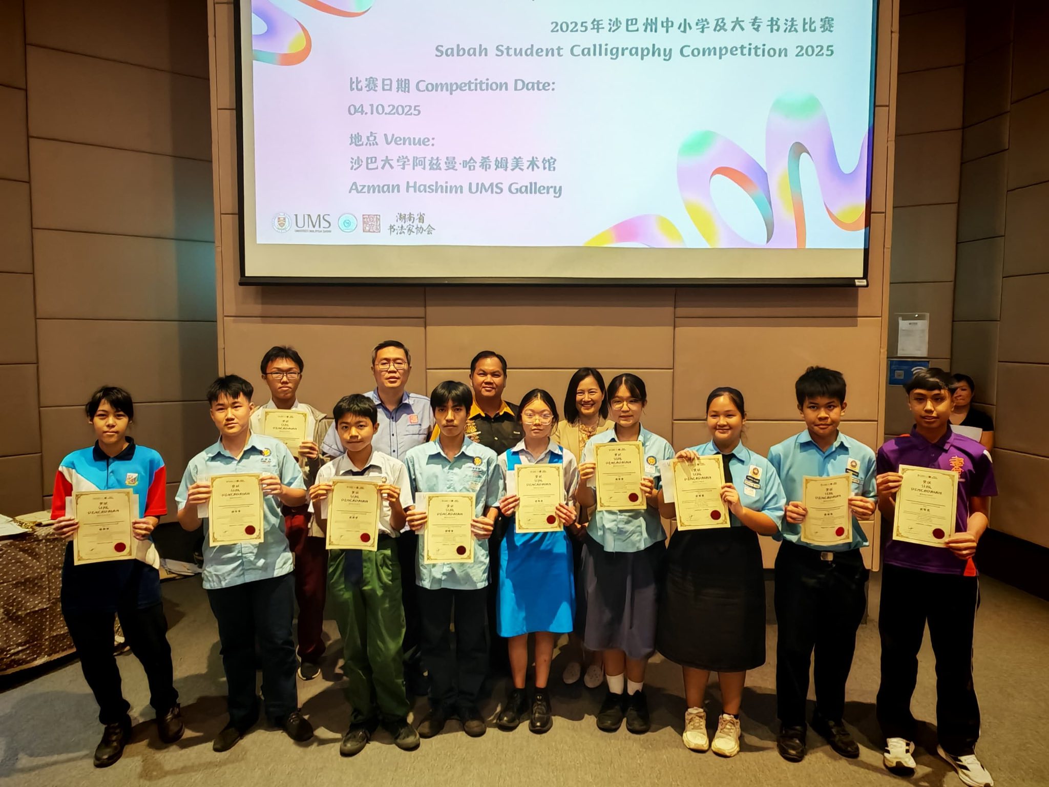 2025年10月4日,由沙巴大学孔子学院与沙巴亚庇书艺协会联合主办的“2025年沙巴州中小学及大专书法比赛”州级赛,于阿兹曼·哈希姆沙巴大学画廊圆满举行。