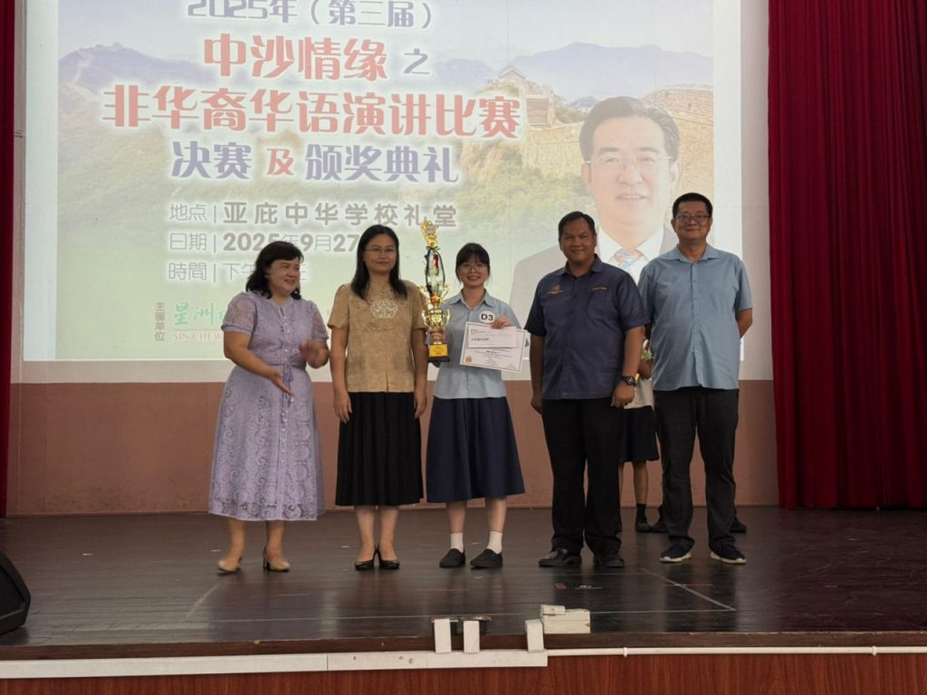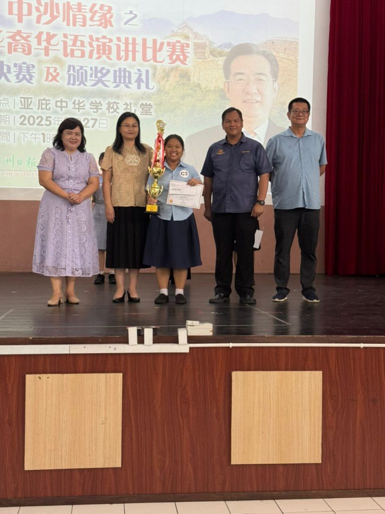 🎉恭喜本校同学在2025年第三届“中沙情缘”非华裔华语演讲比赛决赛中表现优异,载誉而归!本届赛事由沙巴星洲日报主办,中国驻亚庇总领事馆赞助,共吸引全沙巴145名非华裔学生参与,竞争激烈。