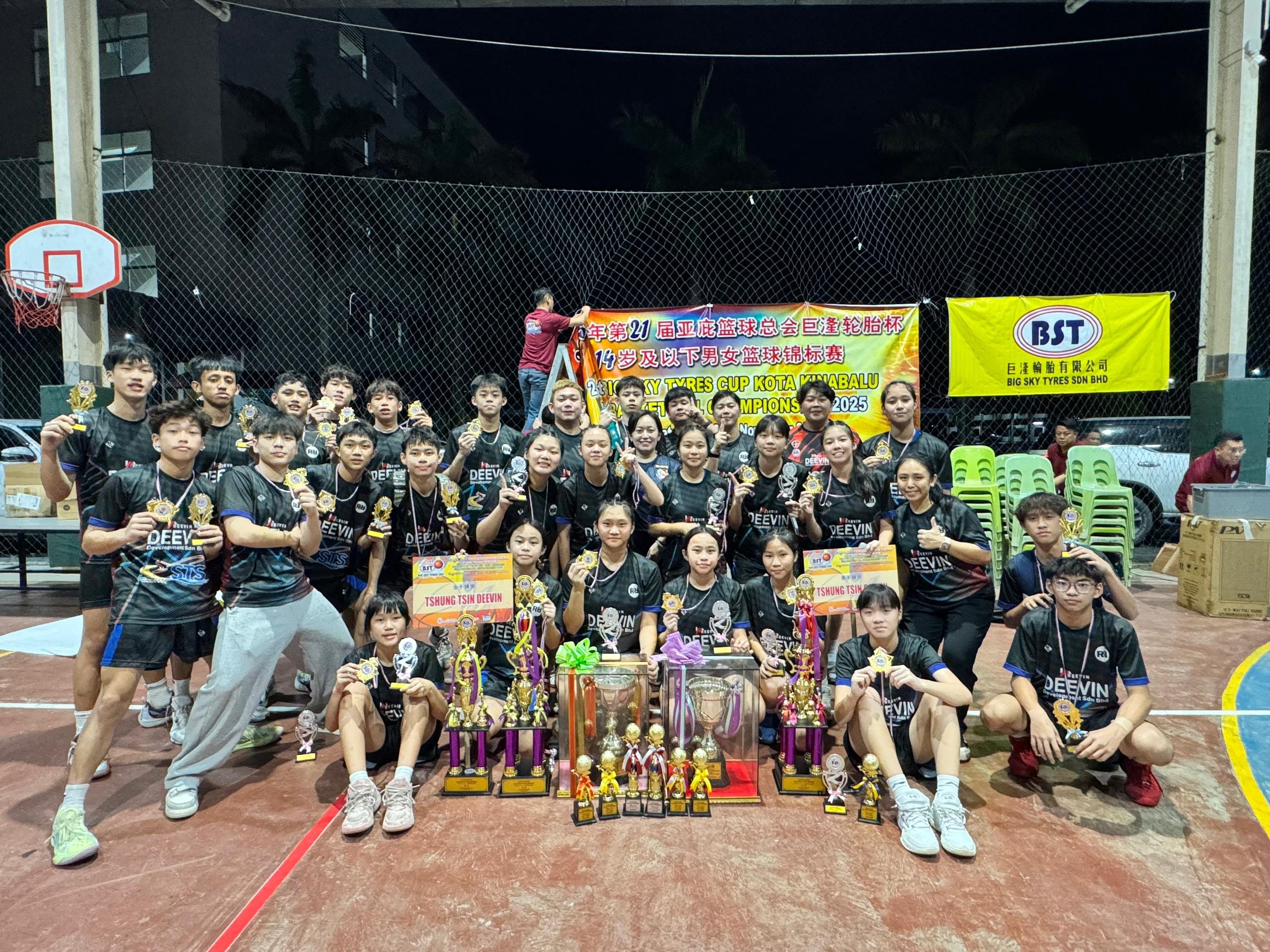 在2025年第21届亚庇篮球总会巨湶轮胎杯 U14 篮球锦标赛中,本校男子队、女子队双双勇夺冠军!🔥