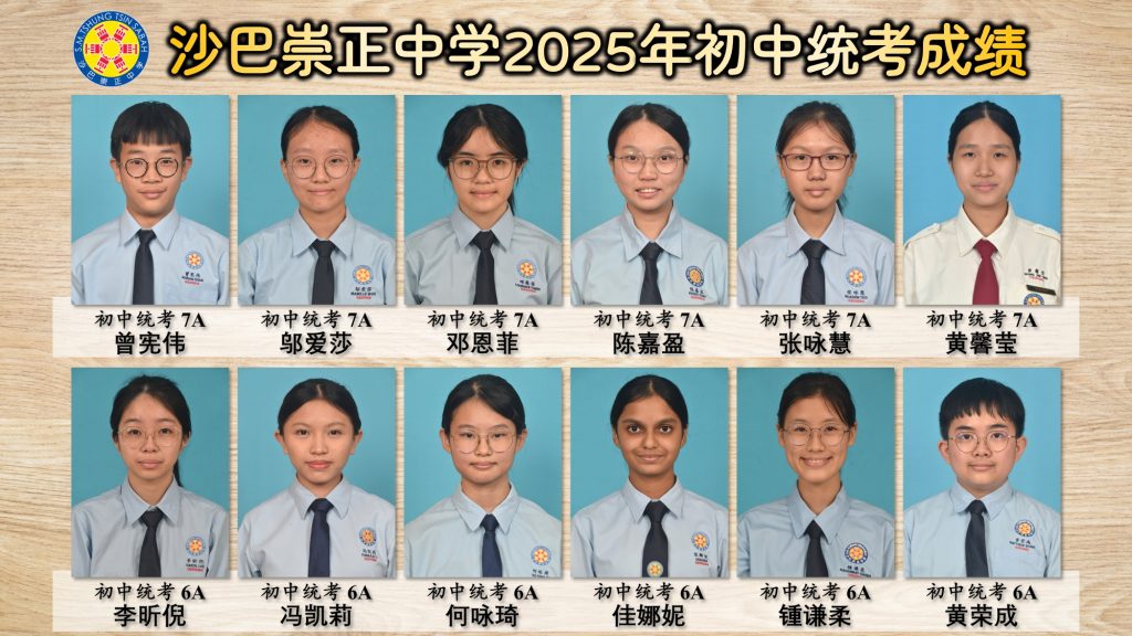 ⭐ 沙巴崇正中学2025年初中统考优异生名单 ⭐