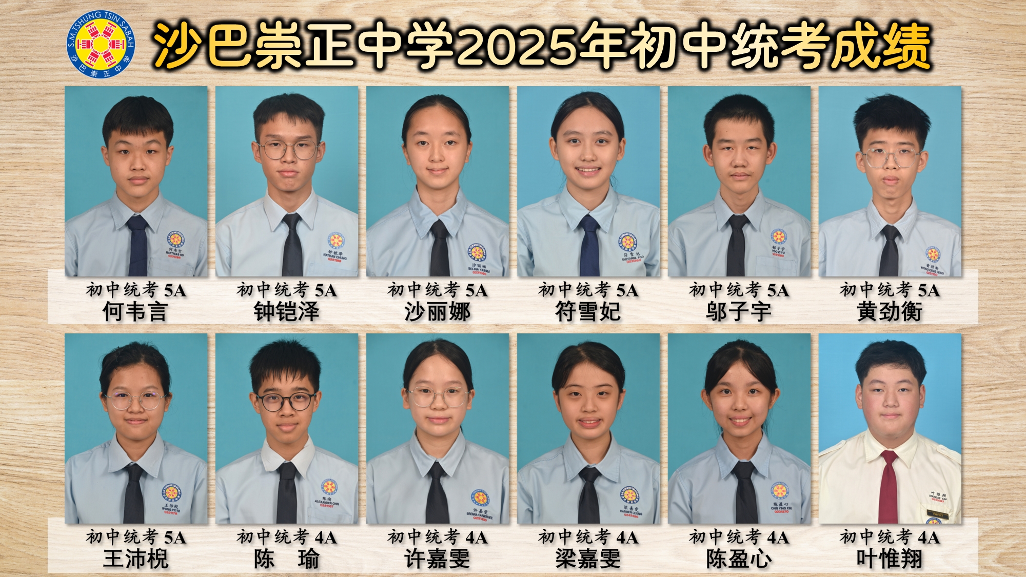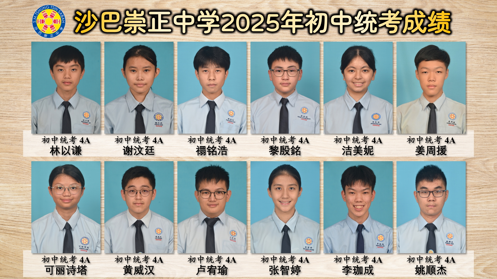 ⭐ 沙巴崇正中学2025年初中统考优异生名单 ⭐