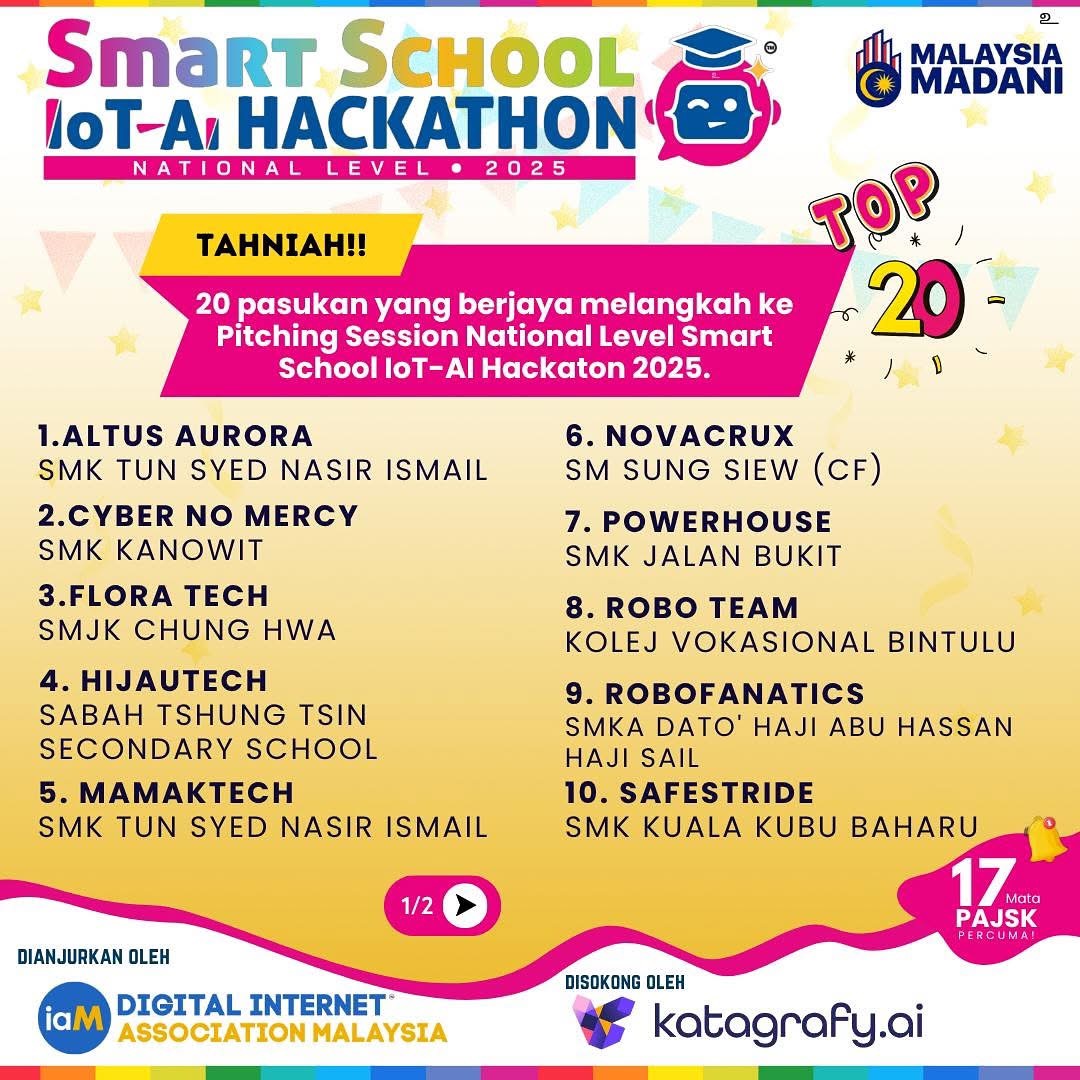 This prestigious national competition is organised by Digital Internet Association Malaysia (IaM), supported by Katagrafy.AI and the Ministry of Education Malaysia, with the theme focusing on Smart City, Smart Tourism, Smart Agriculture, and Smart Healthcare.